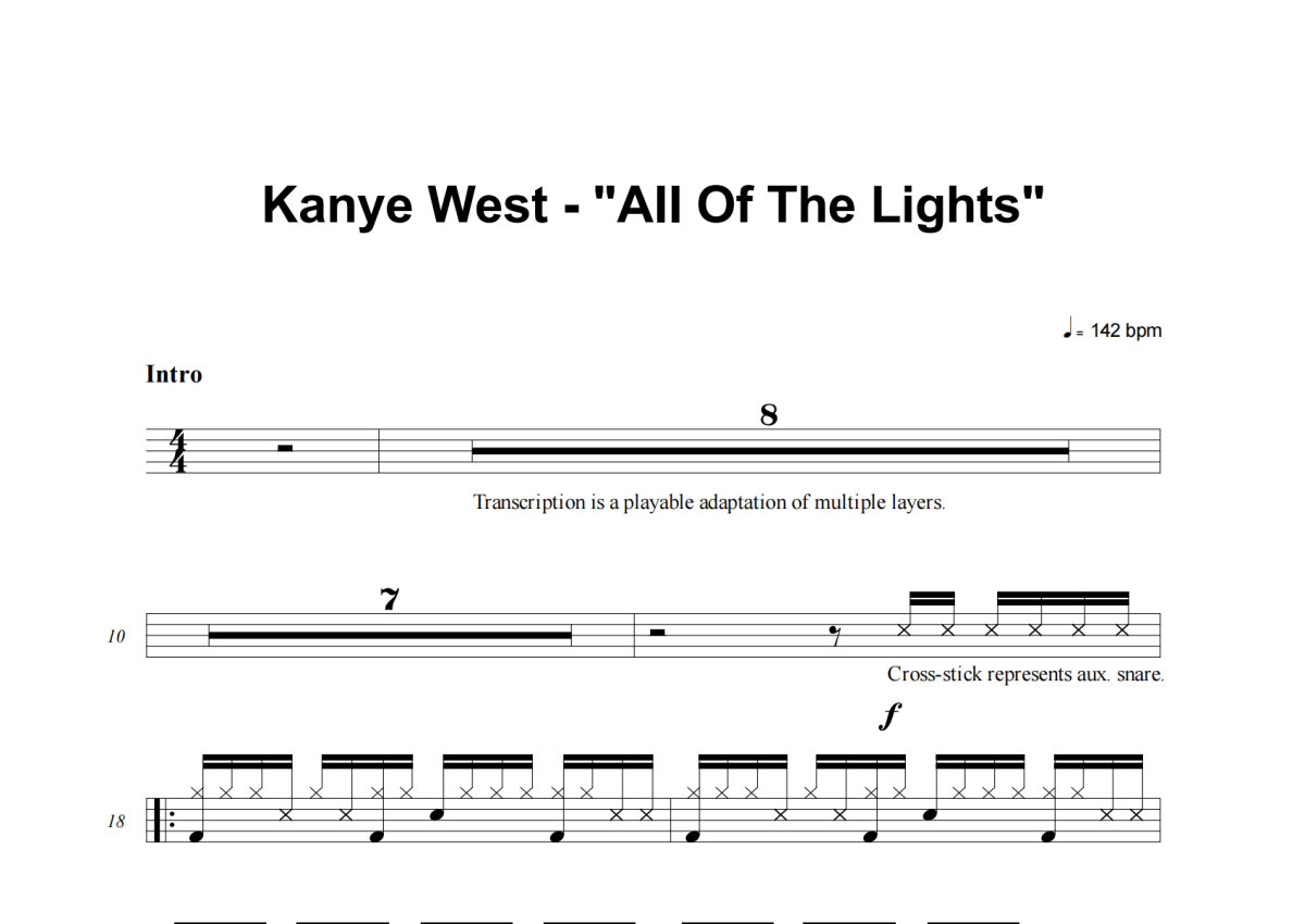 Kanye West《All Of The Lights》架子鼓谱