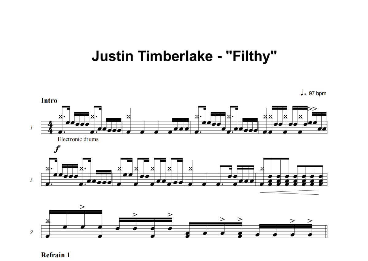 Justin Timberlake《Filthy》架子鼓谱