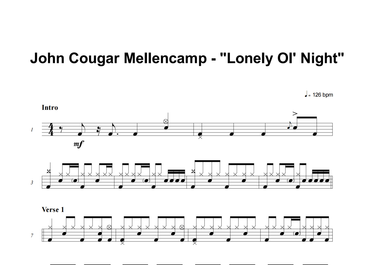 John Cougar Mellencamp《Lonely Ol' Night》架子鼓谱