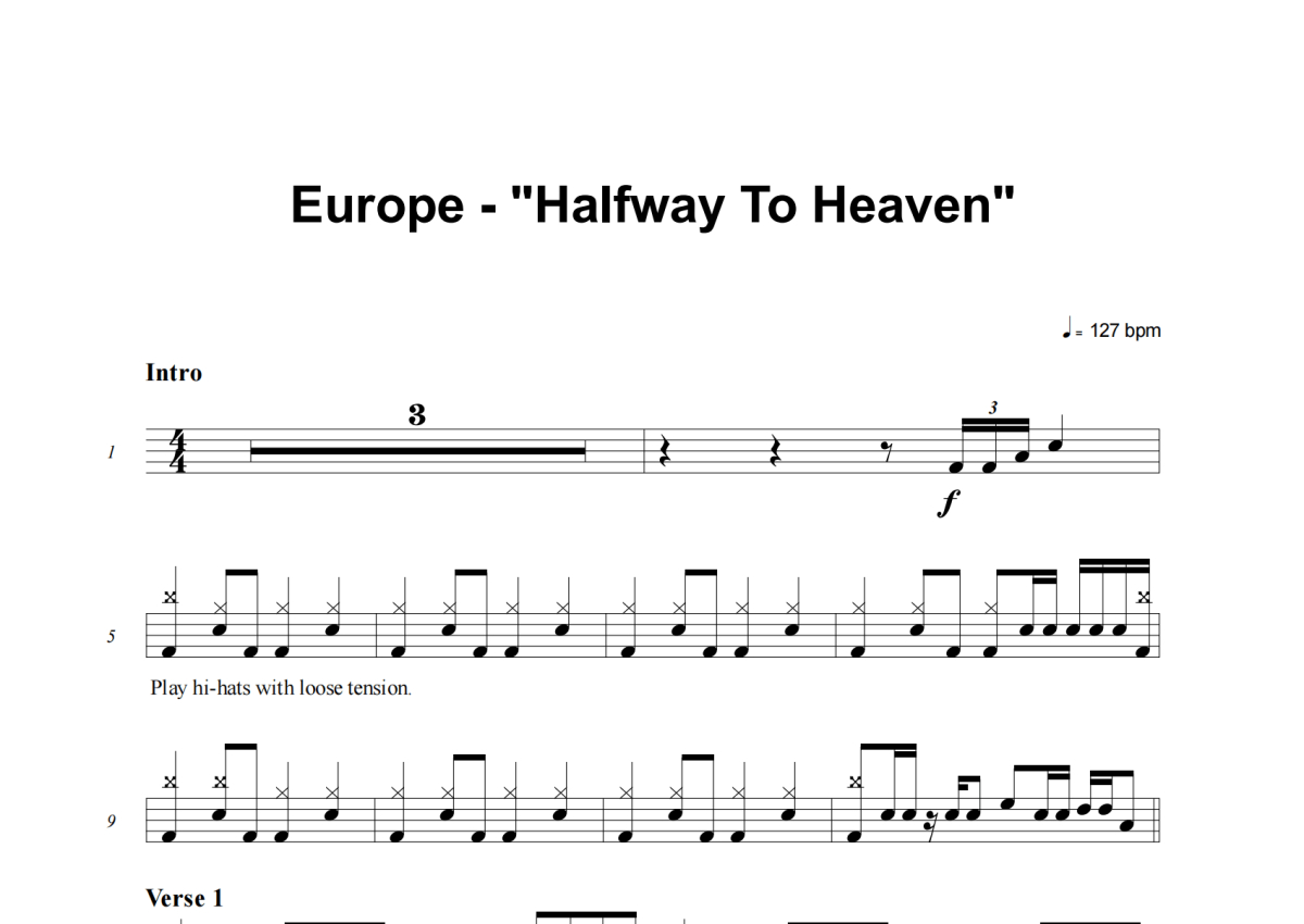 Europe《Halfway To Heaven》架子鼓谱