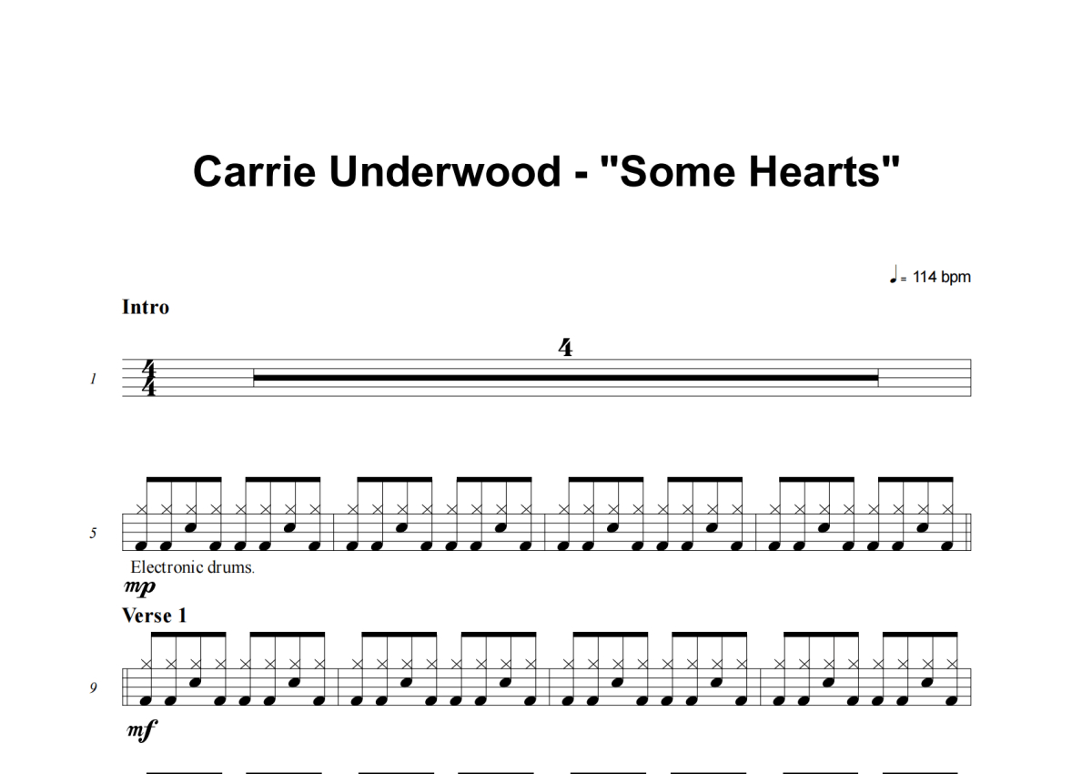 《Some Hearts》是Carrie Underwood演唱的一首歌曲,这份架子鼓谱共有四张高清图谱,图谱由 @失眠的土豆 编配上传,图谱使用五线谱编配,使用这份Some Hearts架子鼓谱,你将能够轻松地敲打出这首Carrie Underwood的Some Hearts,快来尝试吧。