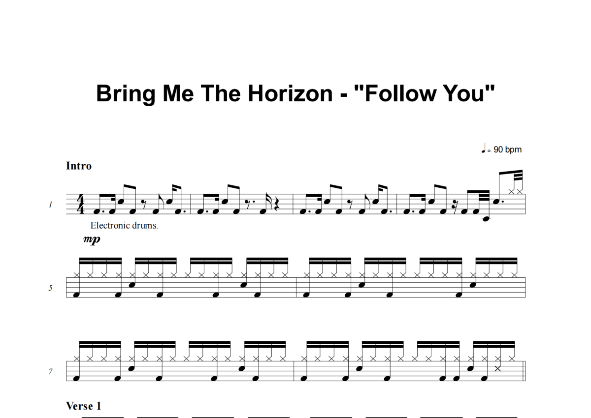 Bring Me The Horizon《Follow You》架子鼓谱