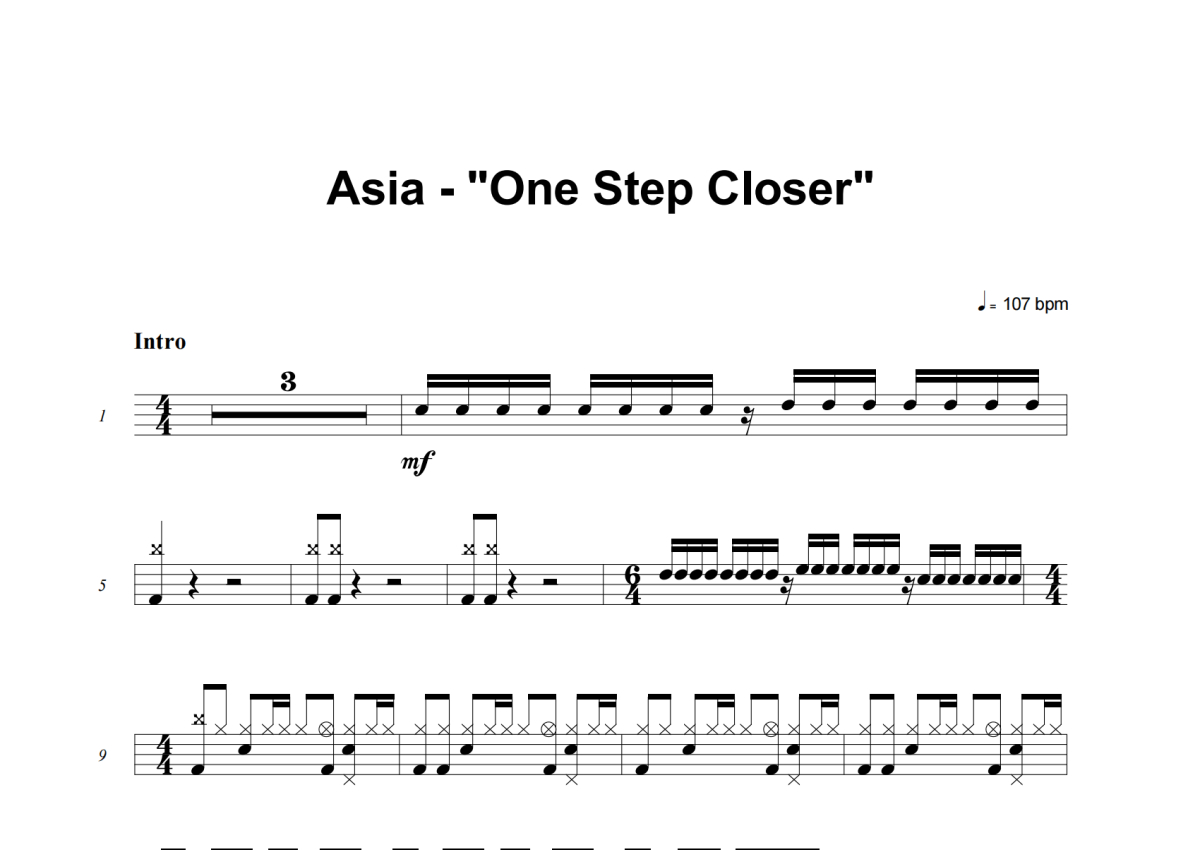 《One Step Closer》是Asia演唱的一首歌曲,这份架子鼓谱共有四张高清图谱,图谱由 @失眠的土豆 编配上传,图谱使用五线谱编配,使用这份One Step Closer架子鼓谱,你将能够轻松地敲打出这首Asia的One Step Closer,快来尝试吧。