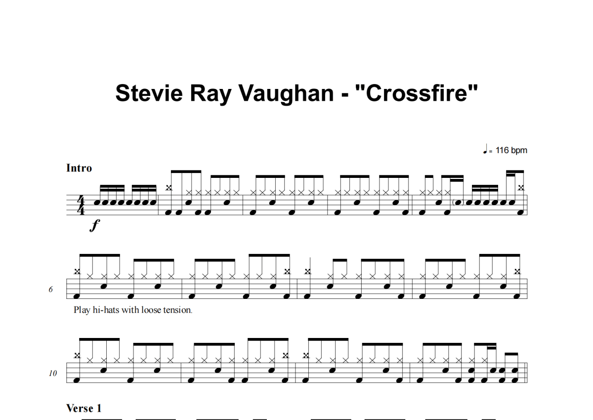 Stevie Ray Vaughan《Crossfire》架子鼓谱