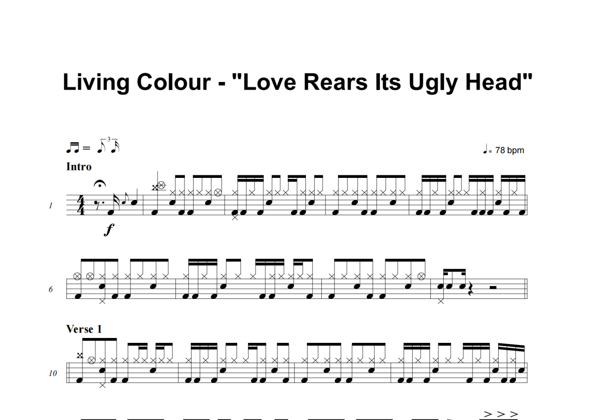 Living Colour《Love Rears Its Ugly Head》架子鼓谱