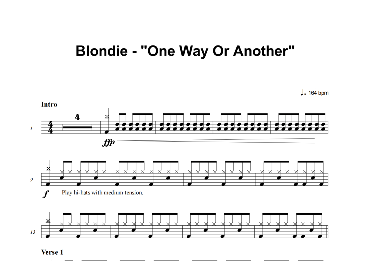 Blondie《One Way Or Another》架子鼓谱
