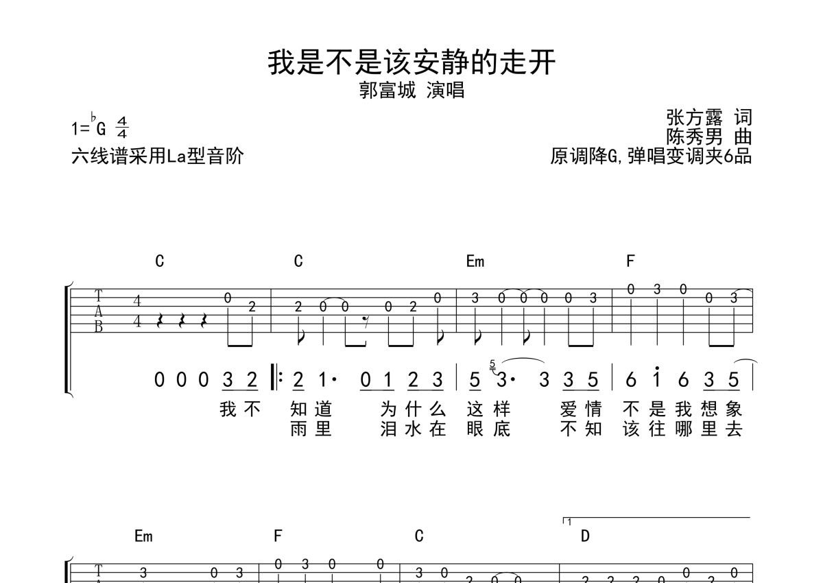 郭富城《我是不是该安静的走开》吉他谱 - G调独奏solo六线谱