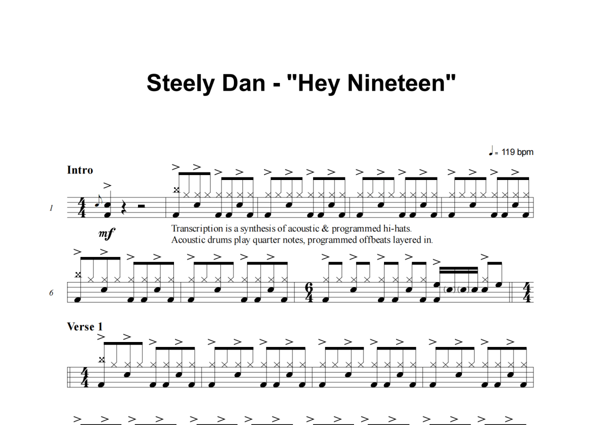 Steely Dan《Hey Nineteen》架子鼓谱