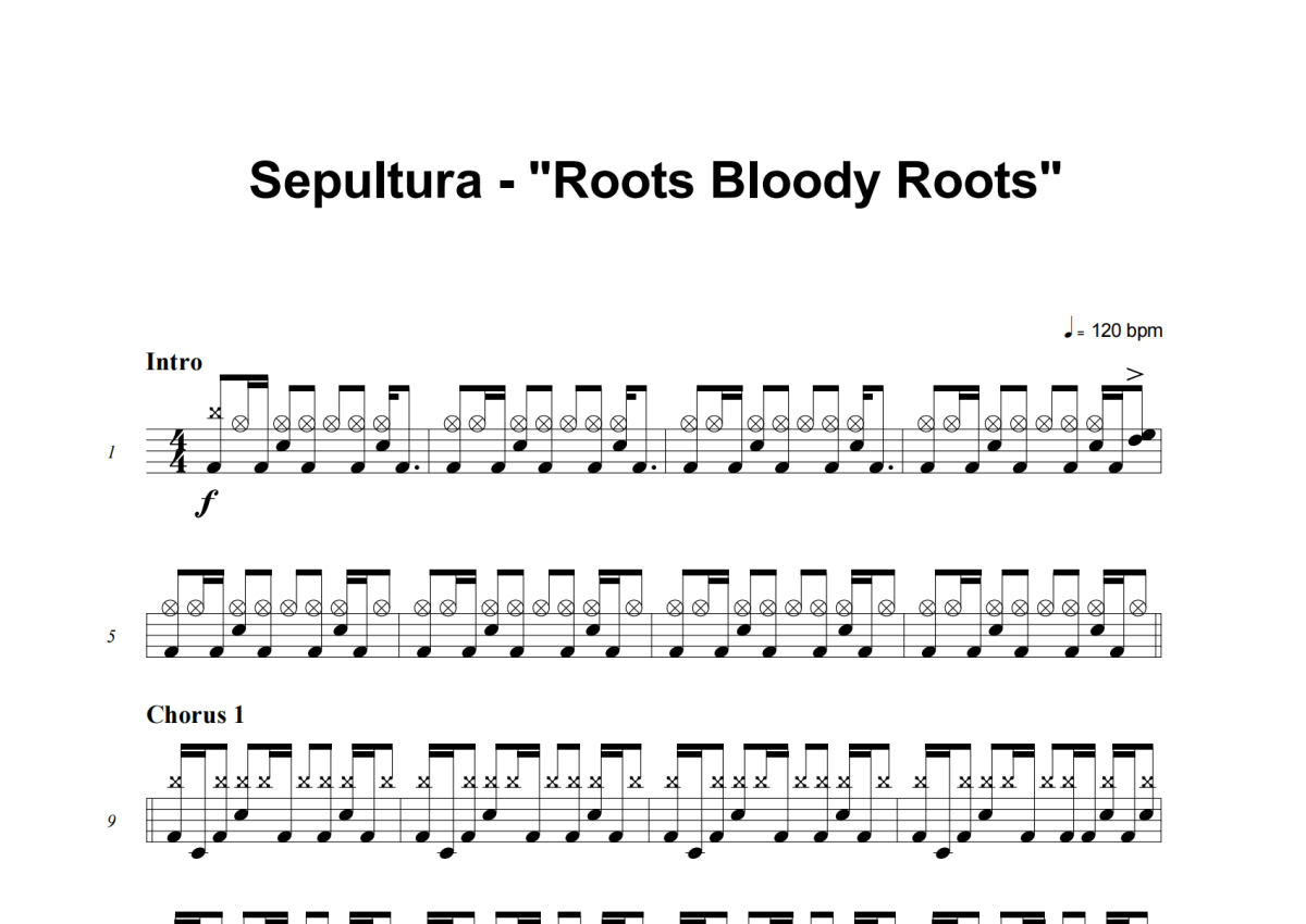 Sepultura《Roots Bloody Roots》架子鼓谱