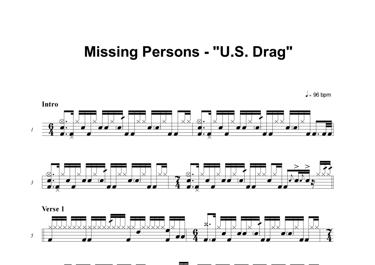 Missing Persons《U.S. Drag》架子鼓谱