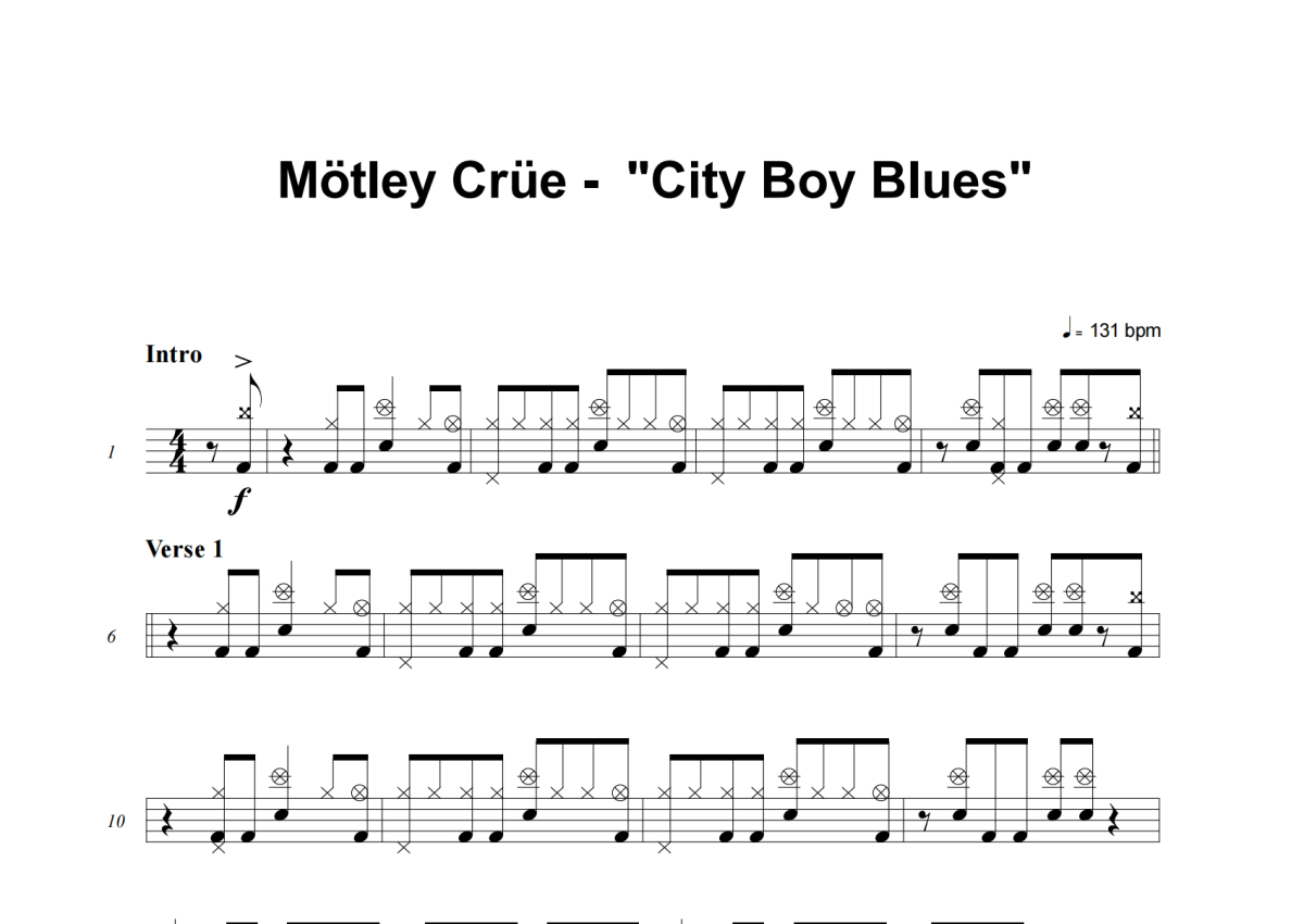 Motley Crue《City Boy Blues》架子鼓谱
