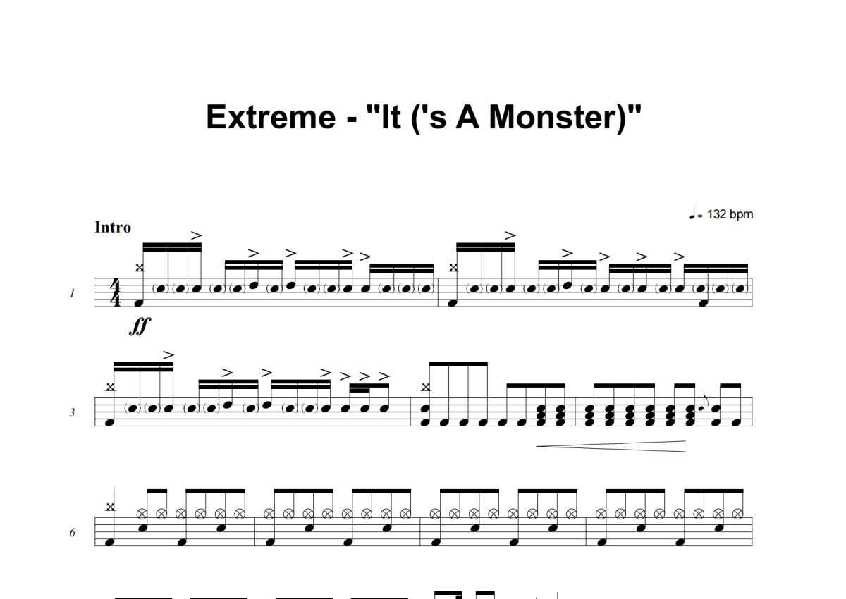 《It ('s A Monster)》是Extreme演唱的一首歌曲,这份架子鼓谱共有五张高清图谱,图谱由 @失眠的土豆 编配上传,图谱使用五线谱编配,使用这份It ('s A Monster)架子鼓谱,你将能够轻松地敲打出这首Extreme的It ('s A Monster),快来尝试吧。
