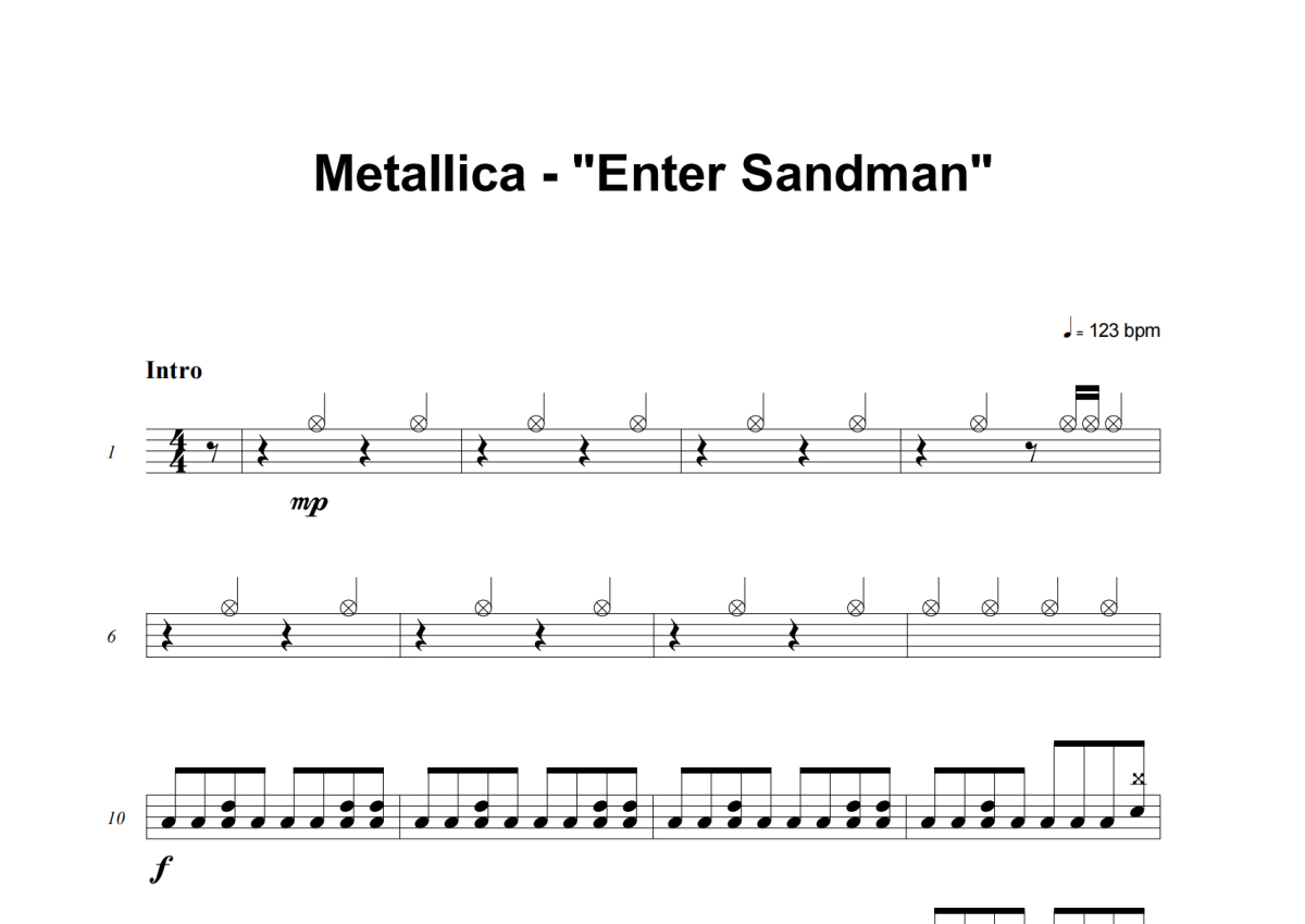Metallica《Enter Sandman (Easy Version)》架子鼓谱