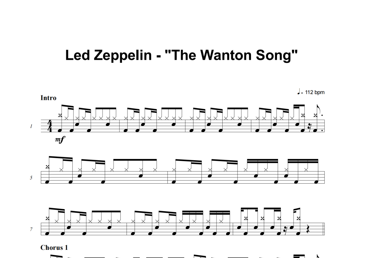 Led Zeppelin《The Wanton Song (Easy Version)》架子鼓谱