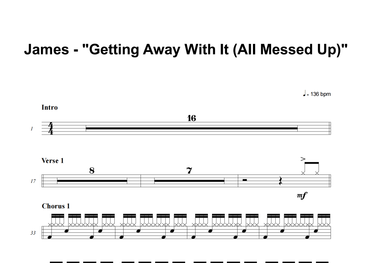 James《Getting Away With It (All Messed Up)》架子鼓谱