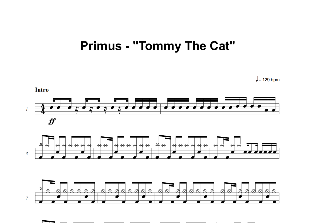 Primus《Tommy The Cat (Easy Version)》架子鼓谱