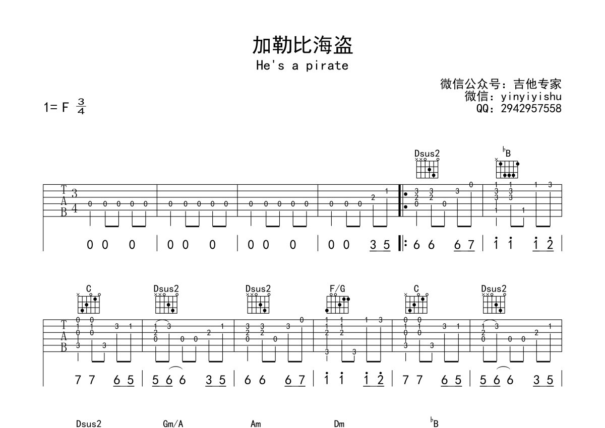 《HesaPirate》吉他谱 - F调独奏六线谱