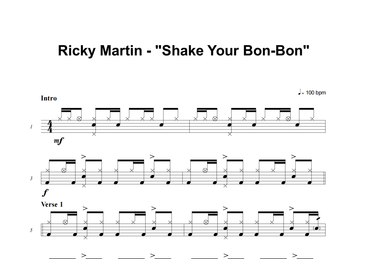 Ricky Martin《Shake Your Bon-Bon》架子鼓谱