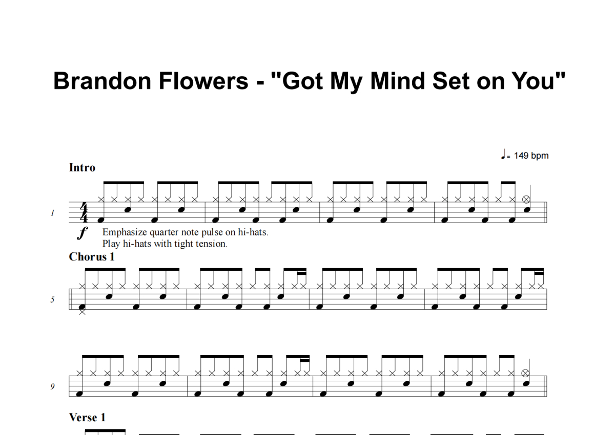 Brandon Flowers《Got My Mind Set On You》架子鼓谱