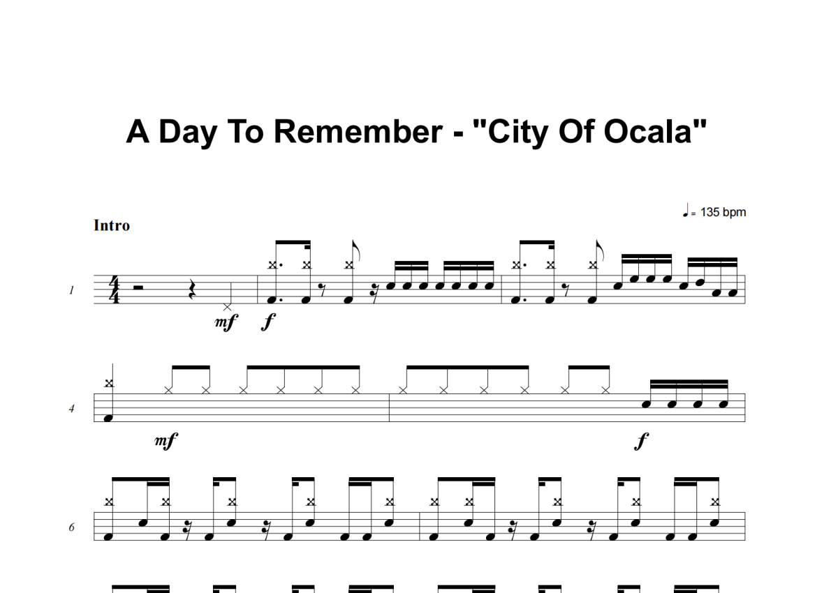 A Day To Remember《City Of Ocala》架子鼓谱