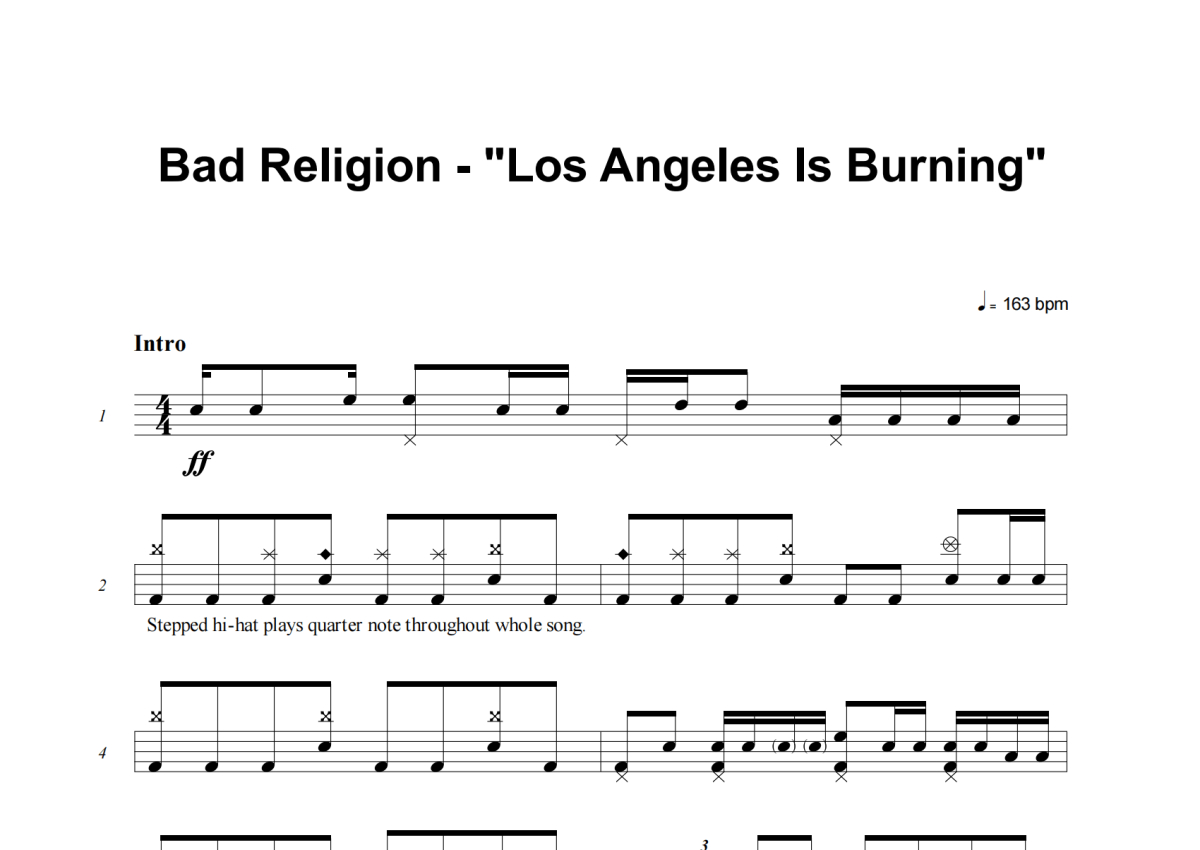 Bad Religion《Los Angeles Is Burning》架子鼓谱