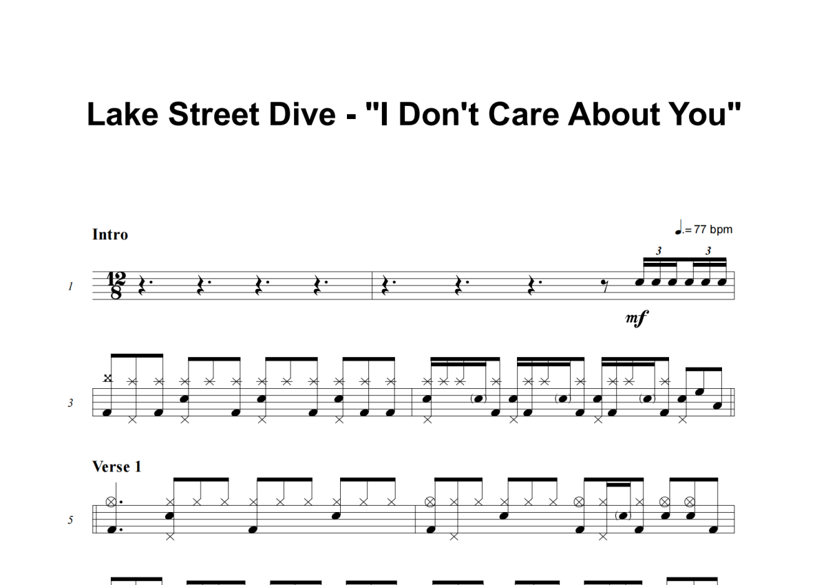 《I Don’t Care About You》是Lake Street Dive演唱的一首歌曲,这份架子鼓谱共有四张高清图谱,图谱由 @失眠的土豆 编配上传,图谱使用五线谱编配,使用这份I Don’t Care About You架子鼓谱,你将能够轻松地敲打出这首Lake Street Dive的I Don’t Care About You,快来尝试吧。