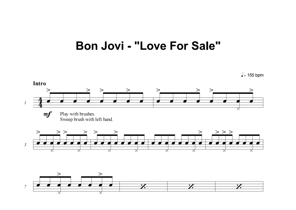 Bon Jovi《Love For Sale》架子鼓谱