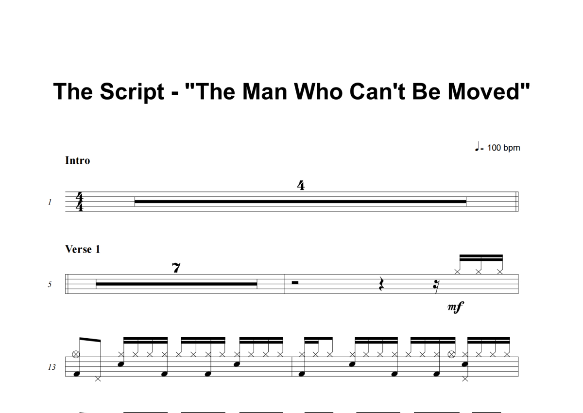 The Script《The Man Who Can't Be Moved》架子鼓谱