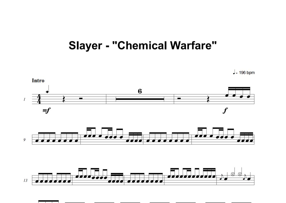 Slayer《Chemical Warfare》架子鼓谱