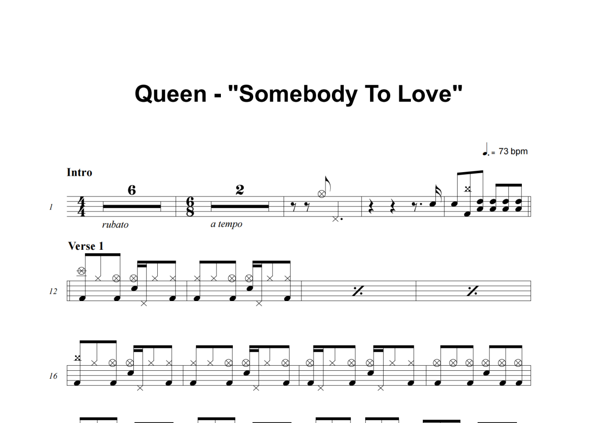 Queen《Somebody To Love》架子鼓谱