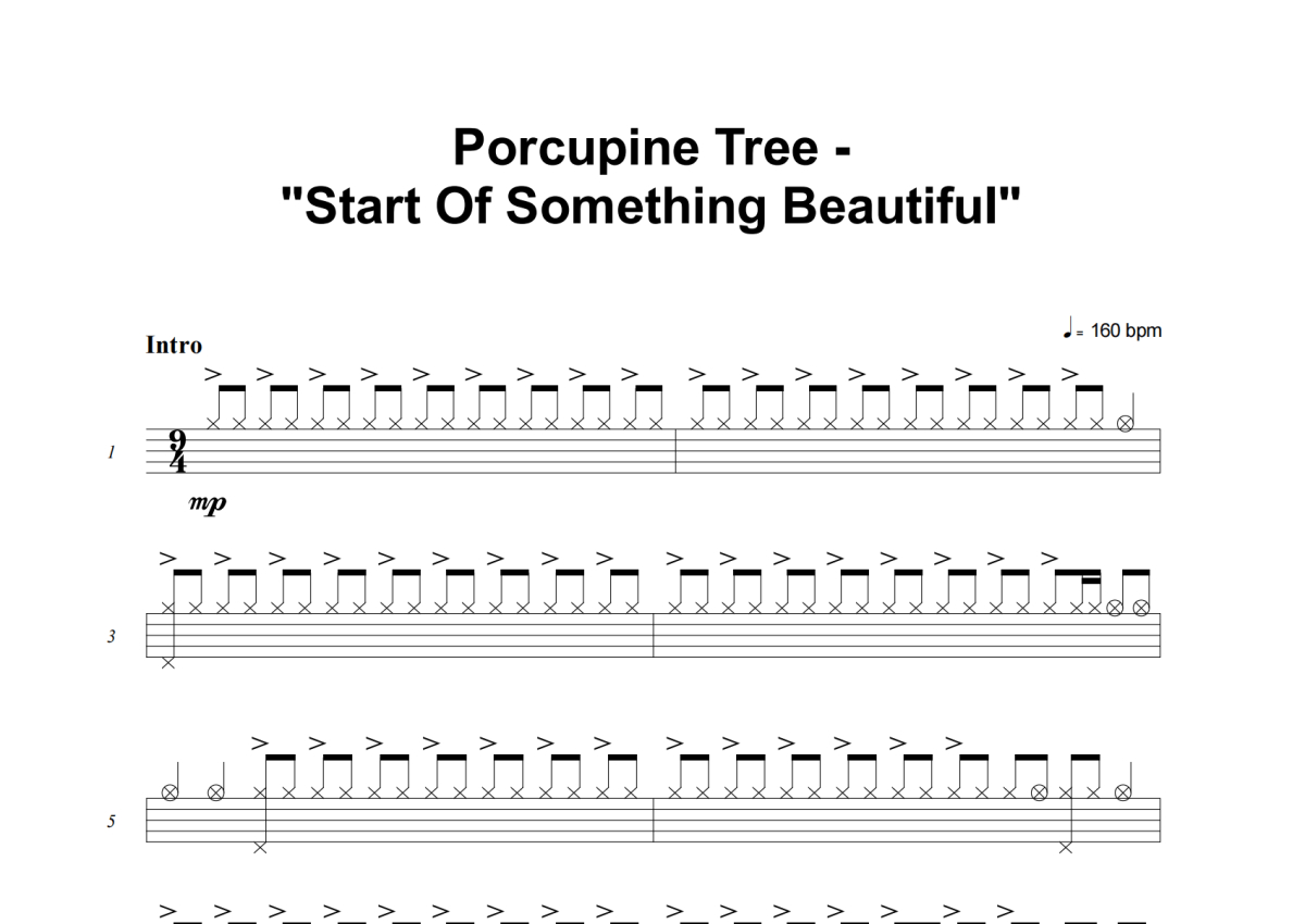 Porcupine Tree《Start Of Something Beautiful》架子鼓谱