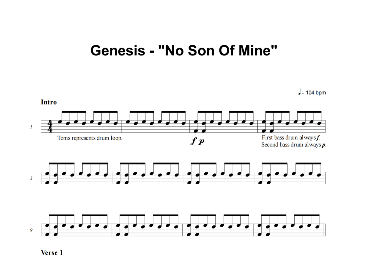 《No Son Of Mine》是Genesis演唱的一首歌曲,这份架子鼓谱共有五张高清图谱,图谱由 @举个例子 编配上传,图谱使用五线谱编配,使用这份No Son Of Mine架子鼓谱,你将能够轻松地敲打出这首Genesis的No Son Of Mine,快来尝试吧。