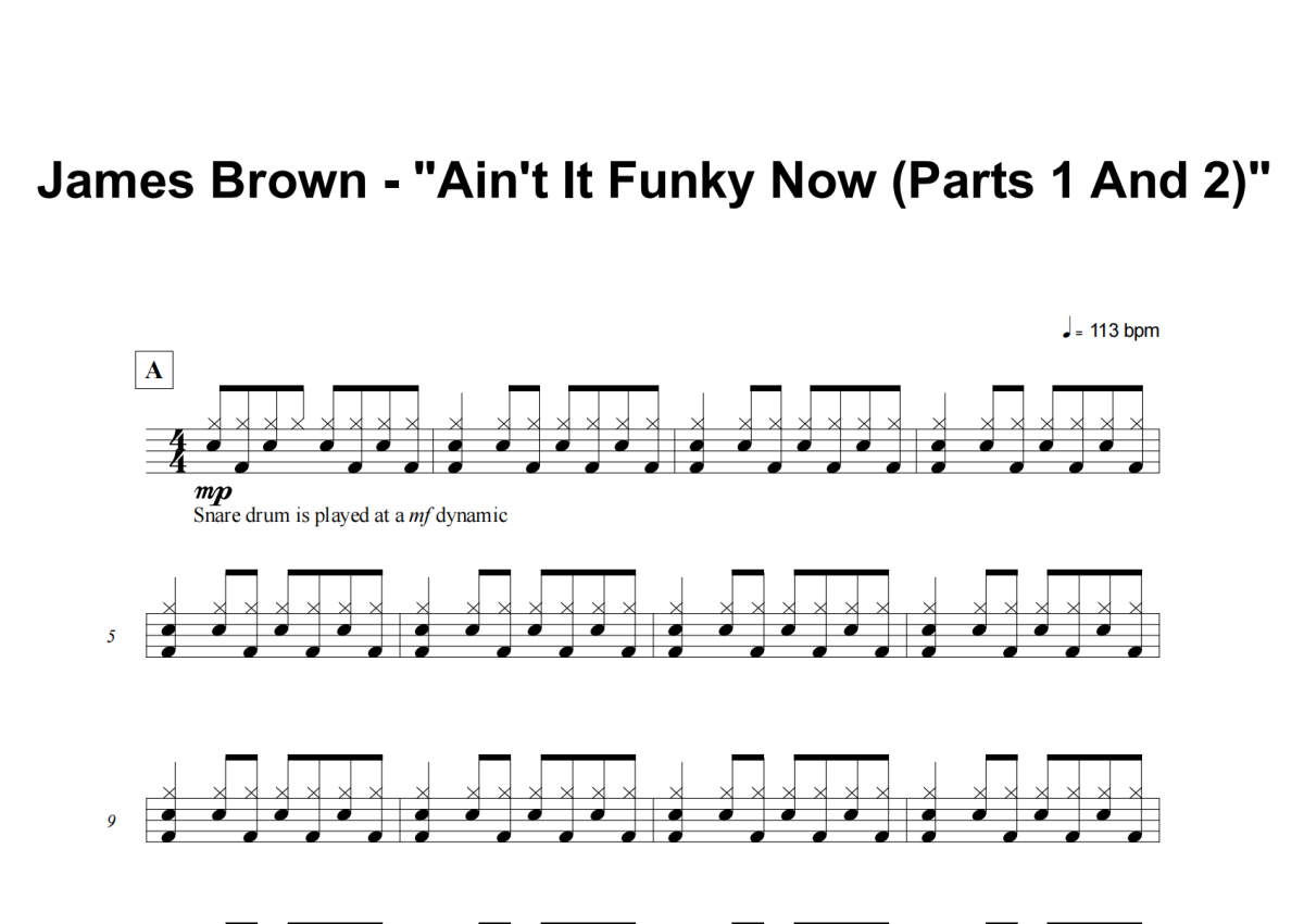 James Brown《Ain't It Funky, Pts. 1-2》架子鼓谱