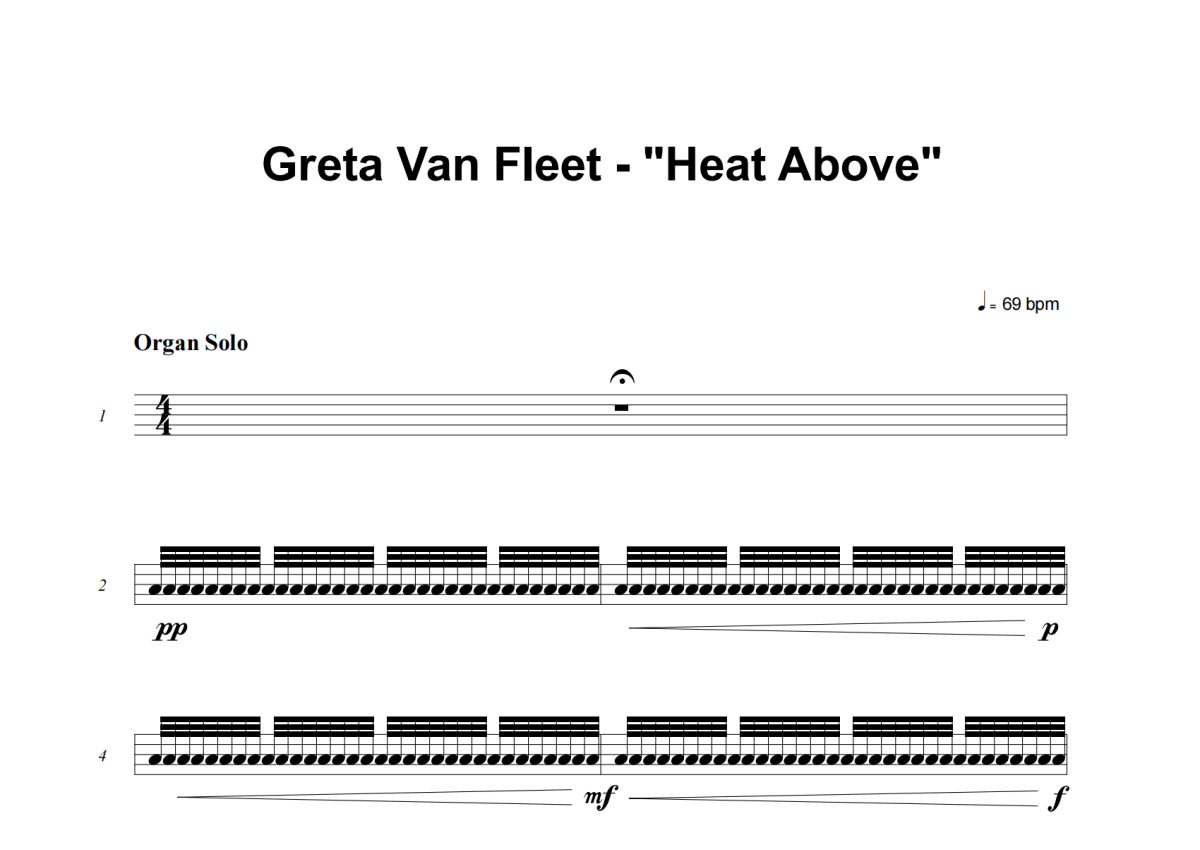 《Heat Above》是Greta Van Fleet演唱的一首歌曲,这份架子鼓谱共有五张高清图谱,图谱由 @举个例子 编配上传,图谱使用五线谱编配,使用这份Heat Above架子鼓谱,你将能够轻松地敲打出这首Greta Van Fleet的Heat Above,快来尝试吧。