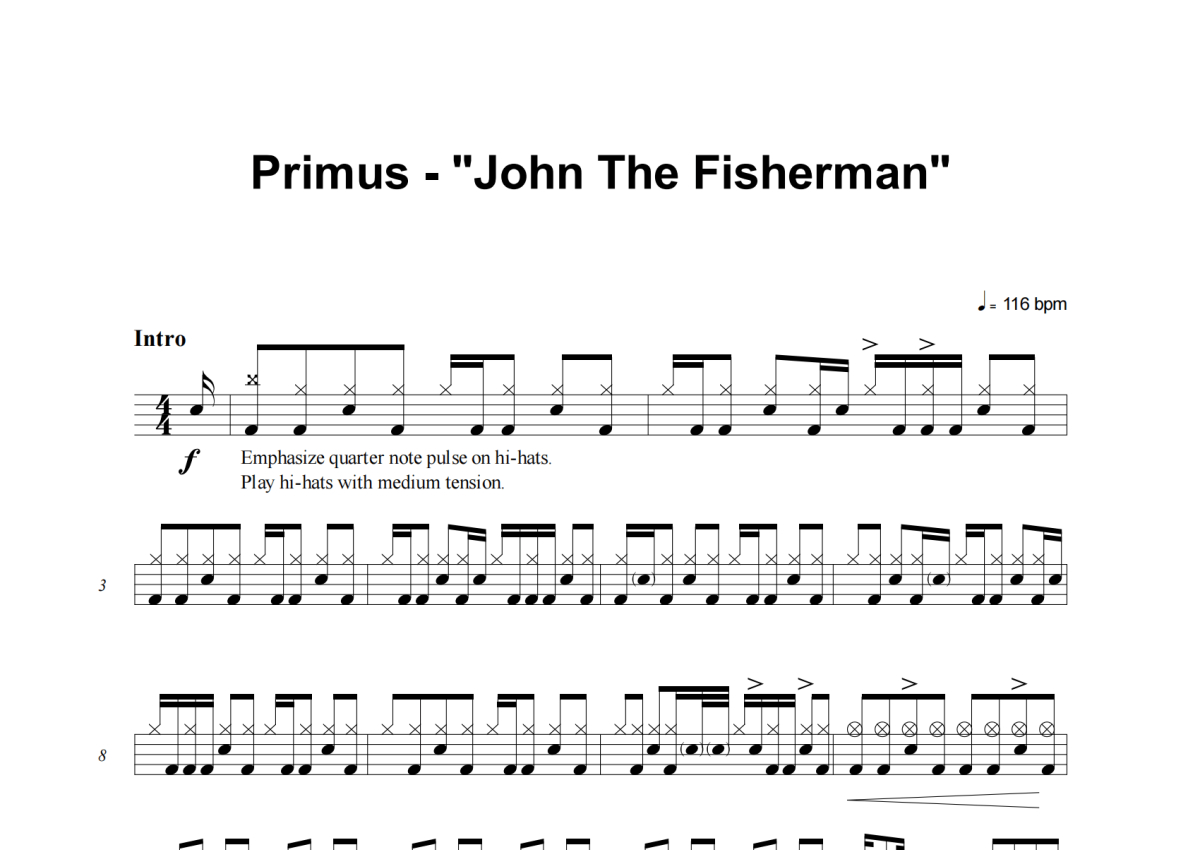 Primus《John The Fisherman》架子鼓谱