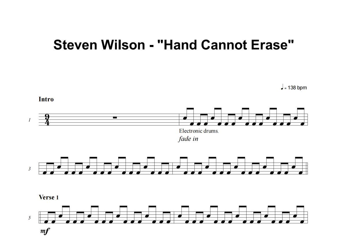 Steven Wilson《Hand Cannot Erase》架子鼓谱