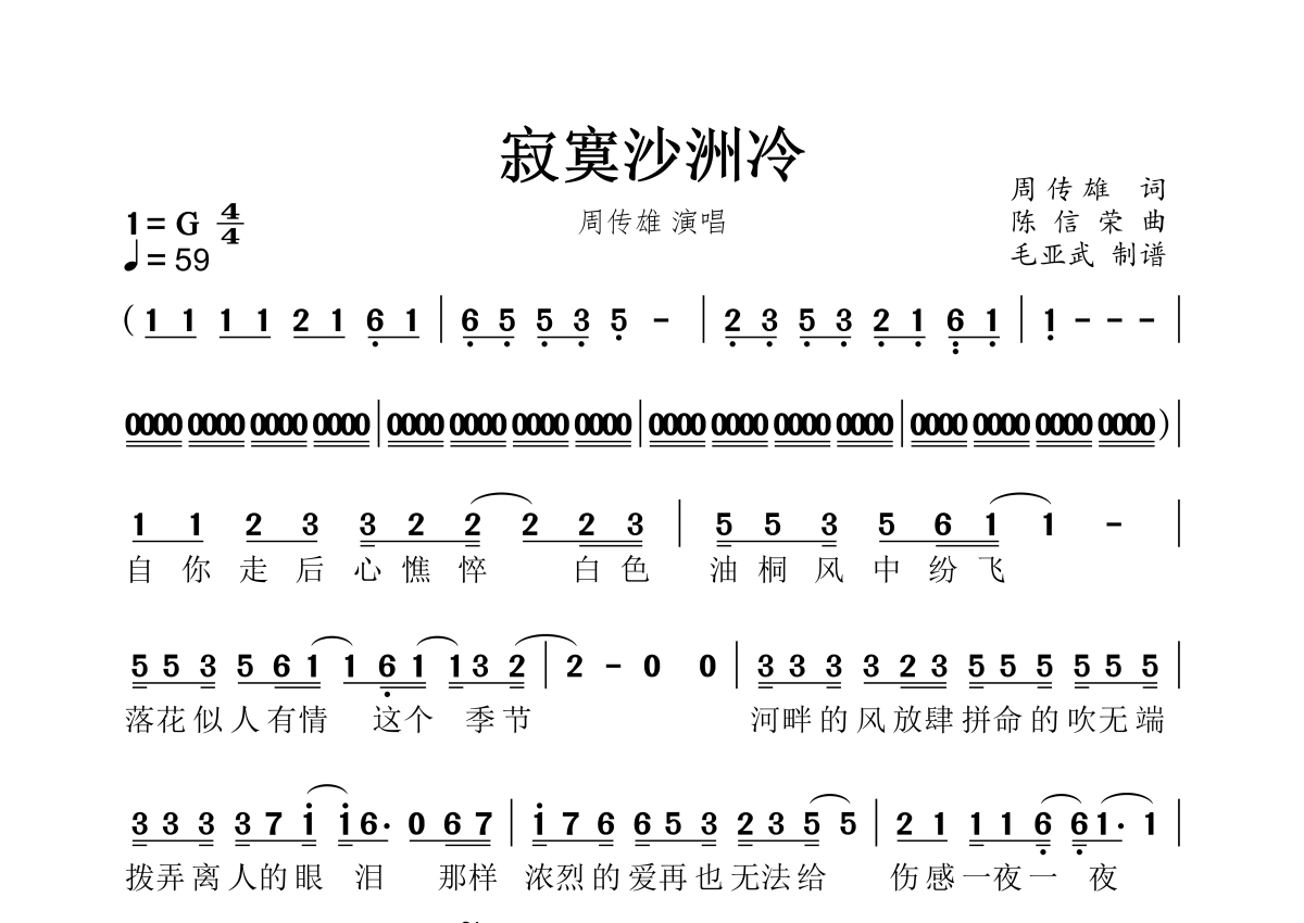 寂寞沙洲冷简谱 - 周传雄演唱