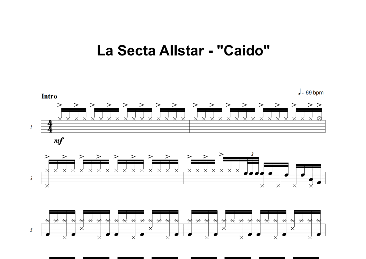 La Secta Allstar《Caido》架子鼓谱