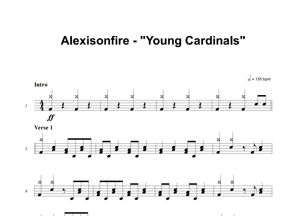 《Young Cardinals》是Alexisonfire演唱的一首歌曲,这份架子鼓谱共有六张高清图谱,图谱由 @举个例子 编配上传,图谱使用五线谱编配,使用这份Young Cardinals架子鼓谱,你将能够轻松地敲打出这首Alexisonfire的Young Cardinals,快来尝试吧。
