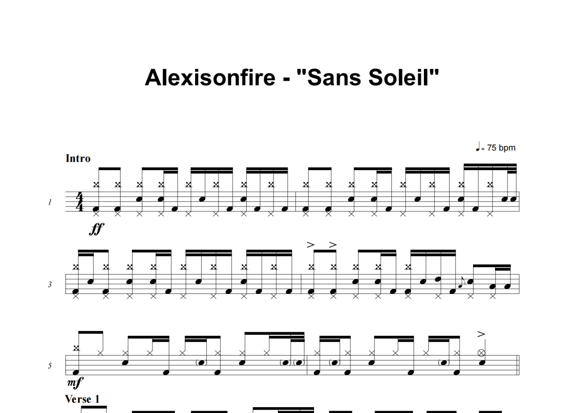 《Sans Soleil》是Alexisonfire演唱的一首歌曲,这份架子鼓谱共有六张高清图谱,图谱由 @举个例子 编配上传,图谱使用五线谱编配,使用这份Sans Soleil架子鼓谱,你将能够轻松地敲打出这首Alexisonfire的Sans Soleil,快来尝试吧。