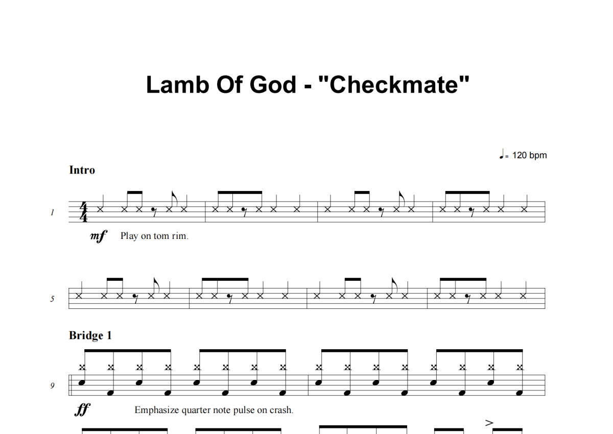 Lamb Of God《Checkmate (Easy Version)》架子鼓谱