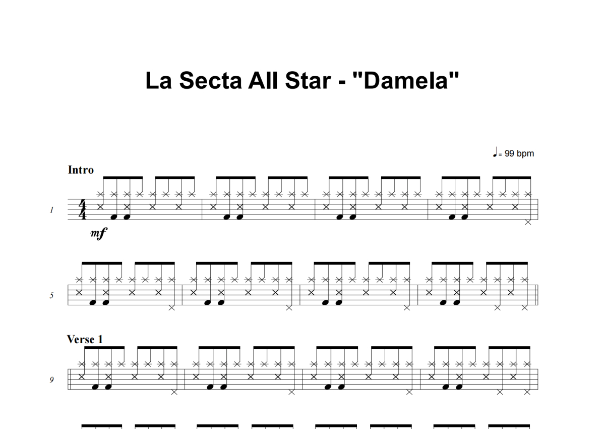 La Secta All Star《Damela》架子鼓谱