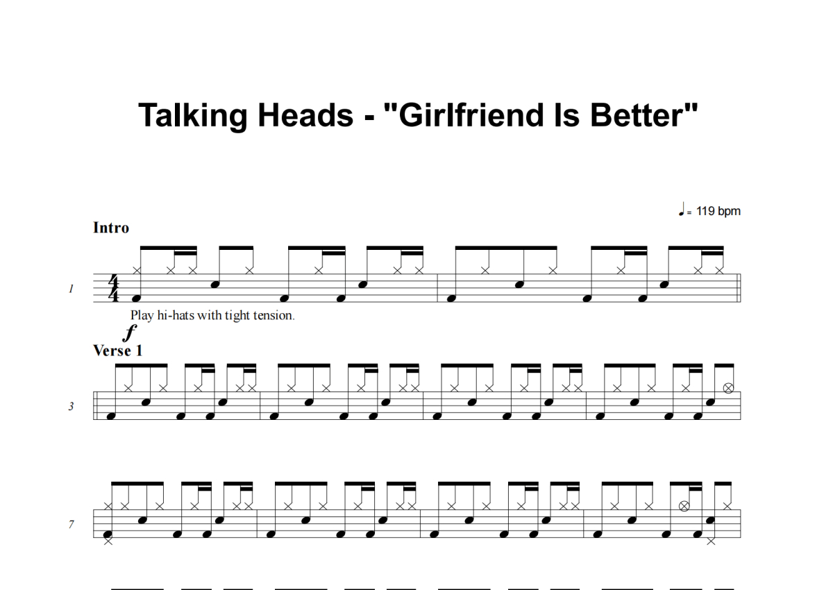Talking Heads《Girlfriend Is Better》架子鼓谱
