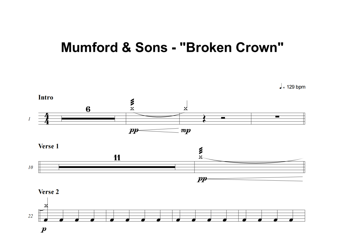 Mumford & Sons《Broken Crown》架子鼓谱