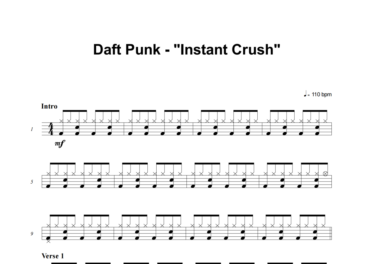 Daft Punk《Instant Crush》架子鼓谱