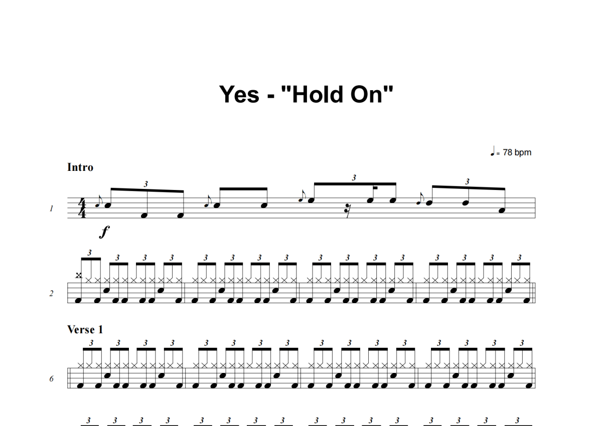 《Hold On》是Yes演唱的一首歌曲,这份架子鼓谱共有六张高清图谱,图谱由 @举个例子 编配上传,图谱使用五线谱编配,使用这份Hold On架子鼓谱,你将能够轻松地敲打出这首Yes的Hold On,快来尝试吧。
