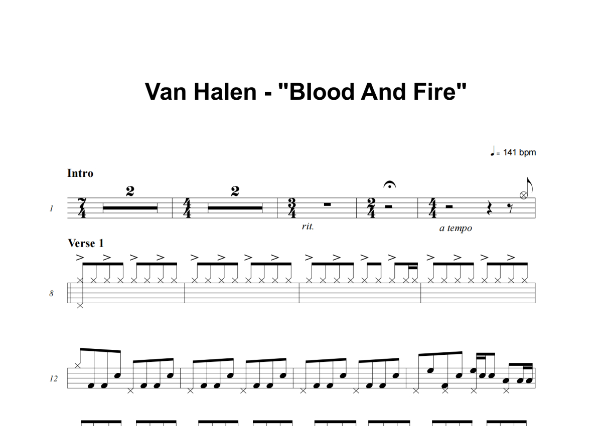Van Halen《Blood And Fire》架子鼓谱