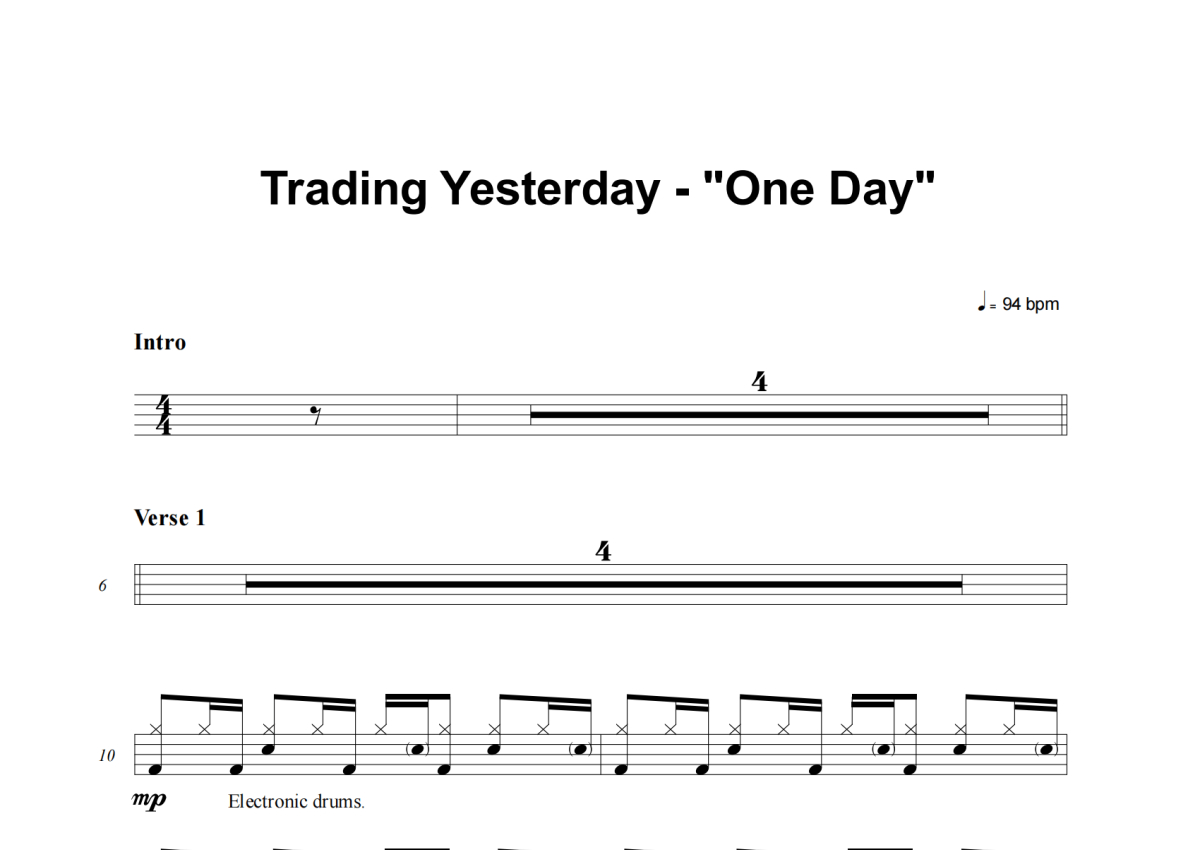 Trading Yesterday《One Day》架子鼓谱