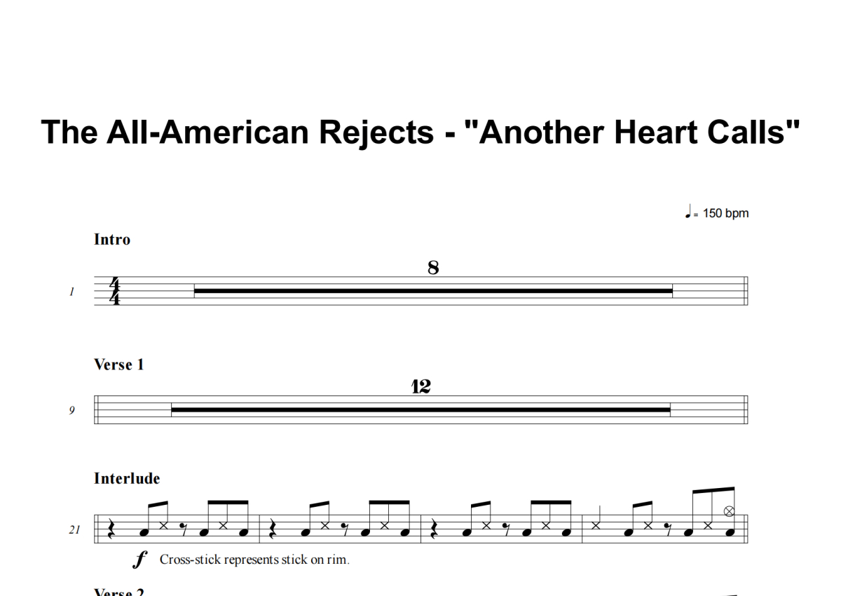 The All-American Rejects《Another Heart Calls》架子鼓谱