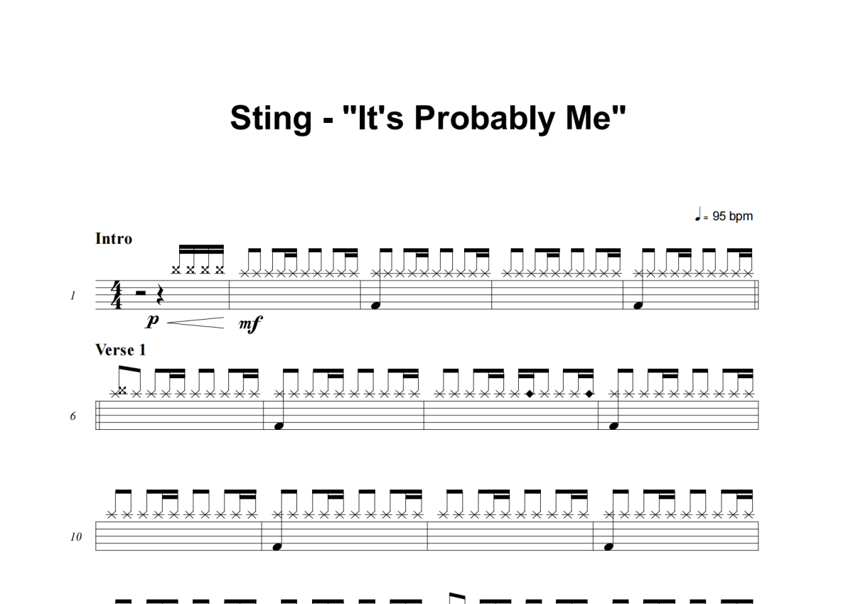 Sting《It's Probably Me》架子鼓谱